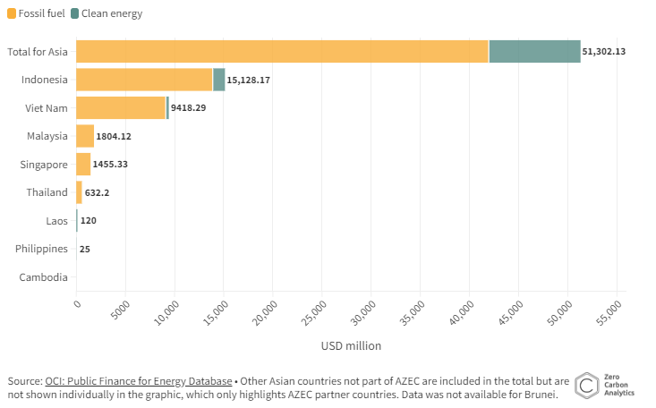 The list of fossil fuel-related projects include ammonia and biomass co-firing at coal and gas power plants in Indonesia, using CO2 capture technologies at thermal plants in Malaysia, developing an LNG-to-power project in Vietnam, and developing a CCS value chain between Japan and Australia. Researchers said that such projects are designed to extend the production of fossil fuels such as oil and gas, as Japan builds up the LNG market in Asia.