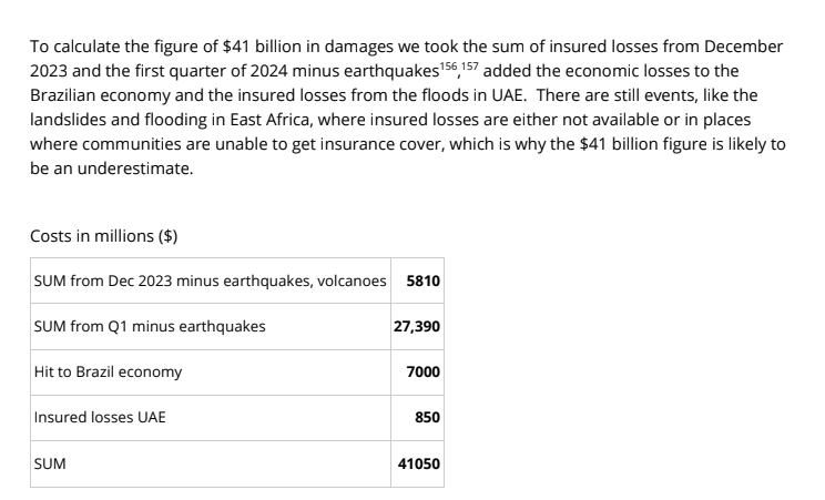 Even $41 billion is an underestimate as only insured losses are reported and many of the biggest disasters have struck nations with low insurance rates for individuals and corporations, says the report