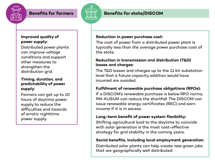 Benefits for farmers, state, and DISCOM in solarizing agriculture feeders. Source