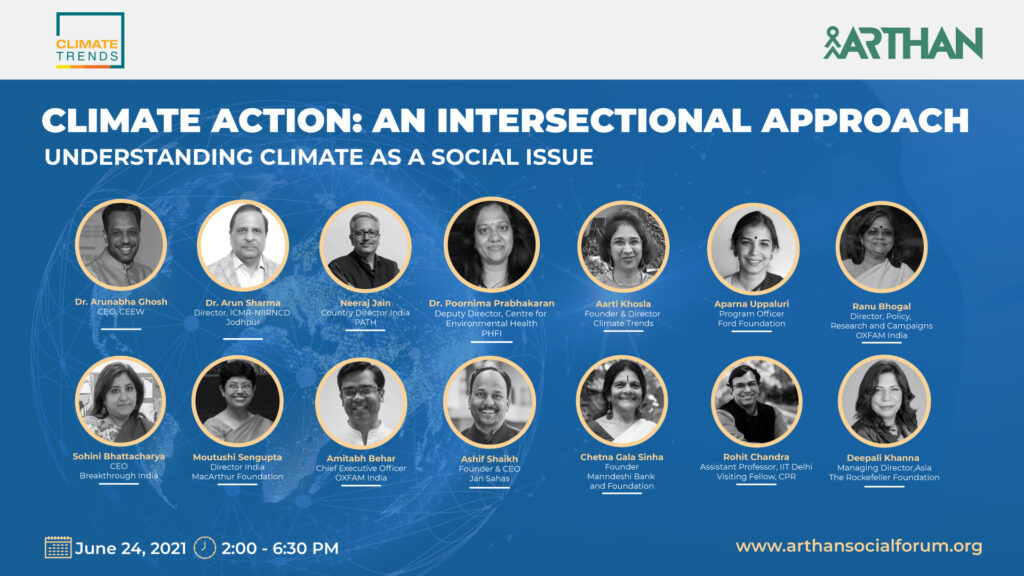 Climate Trends, in partnership with Arthan, is organising a series of online forums to talk about the interlinkages between climate change and different social issues in India.