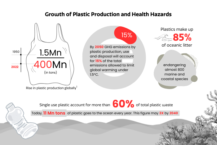 The first plastic polymer was invented in 1869, but the threat of plastic pollution became widely recognised only a hundred years later in the 1970s and 1980s. Initially, the concern of nations was limited mainly to plastic deposits in the ocean. It was only ten years ago, in 2014, at the first session of the United Nations Environment Assembly (UNEA) held in Nairobi, Kenya, where “marine plastic debris and microplastic” was listed as one of the main issues in its adopted resolution. India tabled the proposal to ban single use plastic in 2019.