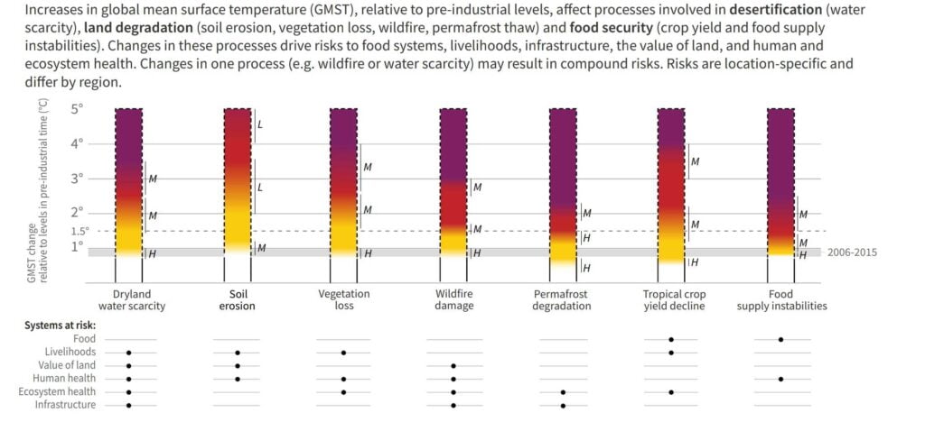 Risks to humans and ecosystems from changes in land-based processes as a result of climate change