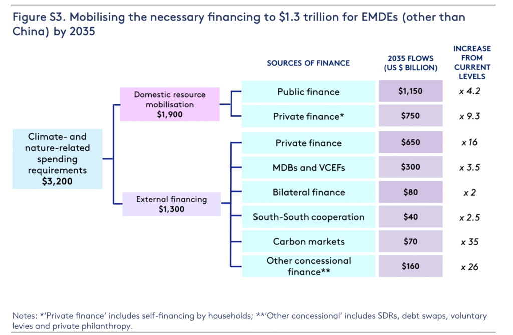 A key characteristic of the $1.3 trillion target is the dependence it has on private investment. The report estimates that about half of all external finance, around $650 billion per year, will need to be privately sourced by 2035.