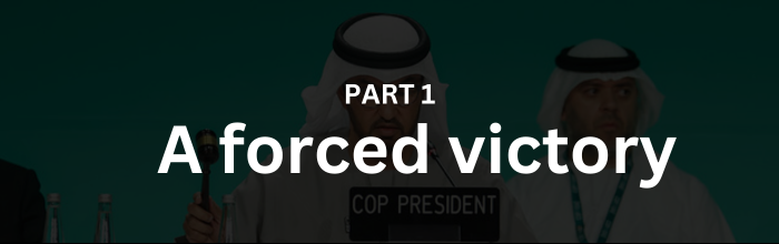 After two weeks of intense speculation, COP28 came to somewhat of an anti-climatic end. COP28 President Sultan al Jaber, presided over the closing plenary of the annual climate summit in ExpoCity Dubai with a clear purpose. In a flash, with a swift bang of the gavel, he announced The UAE Consensus had been adopted. A monument of climate policy had been erected in the blink of an eye, and the hall full of country delegations and observers struggled to absorb the moment. Once the initial shock of the moment passed, the stark mix of emotions became palpable.
