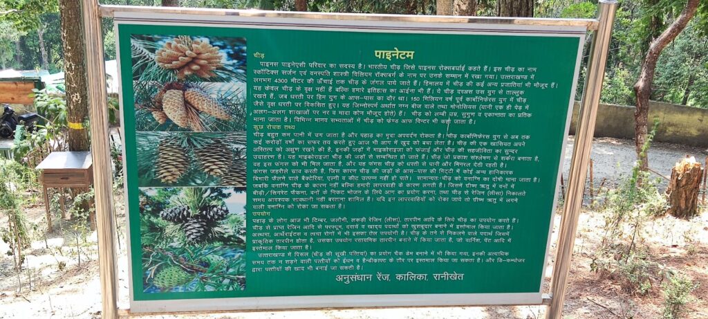 But the forest department’s research centre, built amidst dense forests outside Ranikhet in Uttarakhand, has no such warning. “Forest fire does not occur due to pine trees, but because of our carelessness,” is clearly stated on the board outside. It welcomes visitors with information related to pine. Apart from the native Chir Pine, many other exotic species of pine find a mention. “Interesting facts about pine”, include its quality to stop soil erosion in the hills, besides its ability to grow in dry conditions.