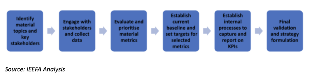 A fundamental first step in ESG strategy development is a sustainability materiality assessment. This typically includes engaging with a company’s key stakeholders to identify and prioritise ESG topics that are most relevant to the business and where a company can make the most meaningful impact.