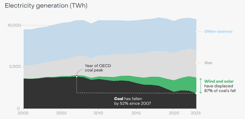 The rapid growth in solar and wind was responsible for 87% of the fall in coal during this period, found Ember’s report.
