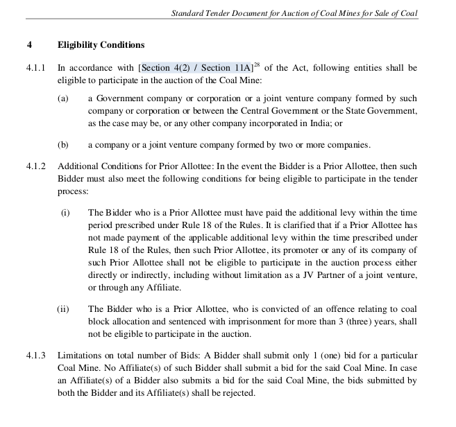 All it wants is for bidders to be registered in India; bars those who have won coalmines under captive auctions and those who have been convicted of offences relating to coal block allocation. “Take a look yourself,” said the former head of the coal miner. “They have done away with all conditions.”